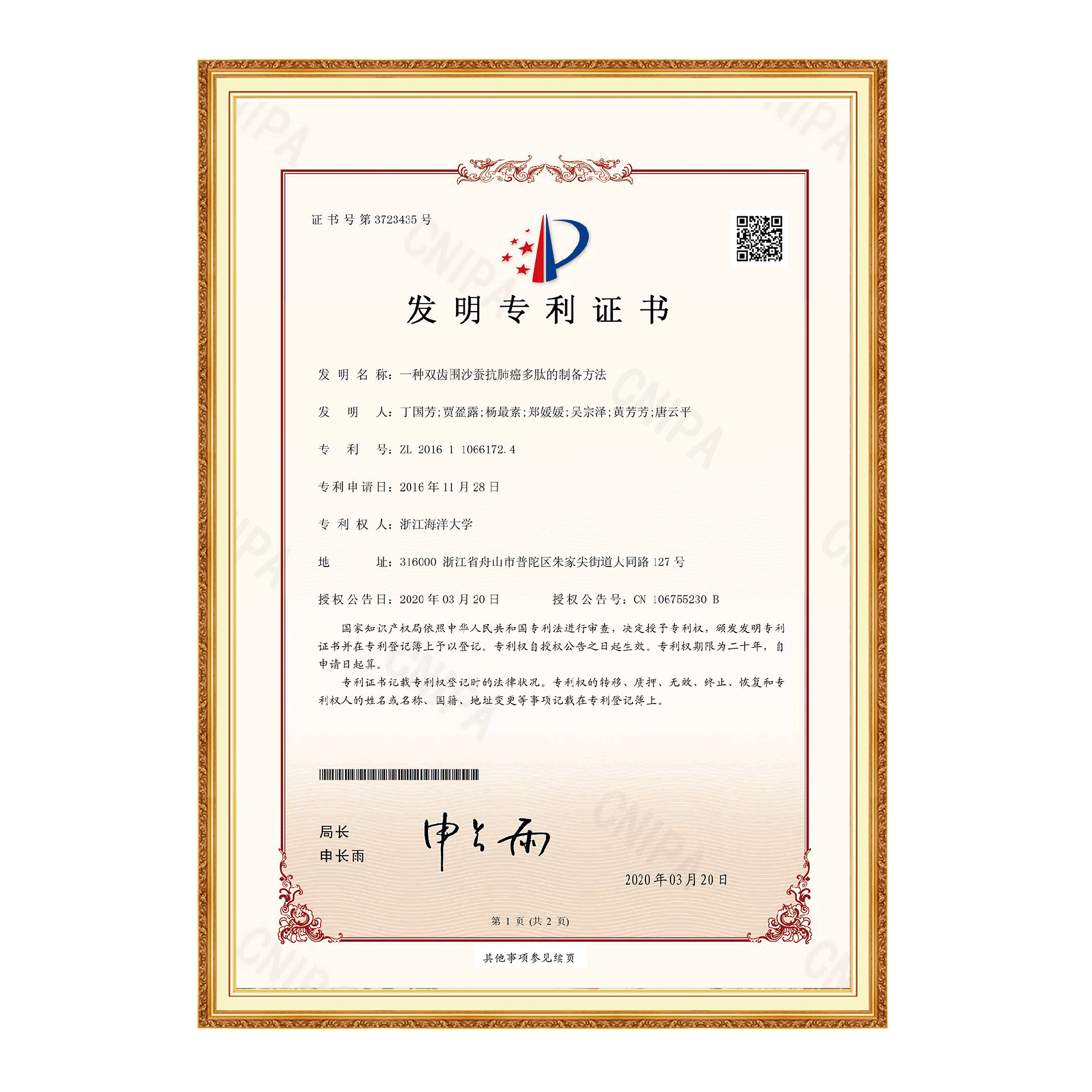 申请人 浙江海洋学院